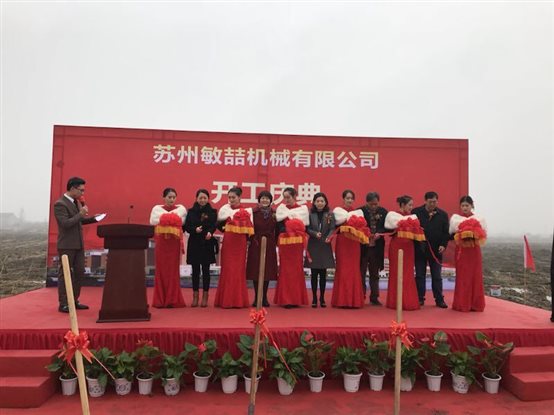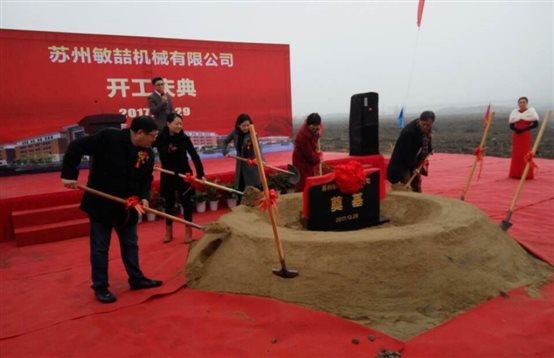 2017年12月29日,我司全資子公司蘇州敏喆機械有限公司新工廠奠基及開工儀式隆重舉行。我司董事長劉迪女士及蘇州吳中開發(fā)區(qū)領(lǐng)導(dǎo)參加了奠基及開工剪彩儀式。